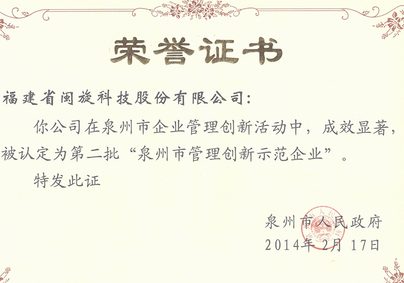 6686体育:泉州市管理创新示范企业