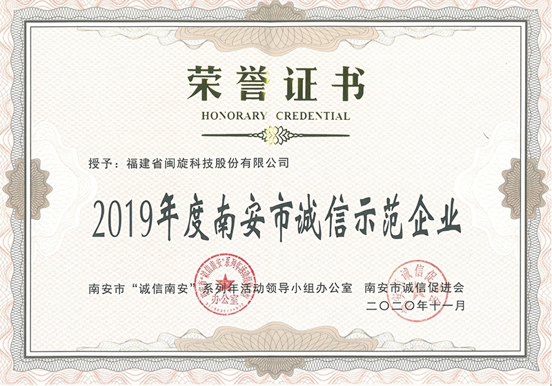 6686体育:南安市诚信示范企业荣誉证书