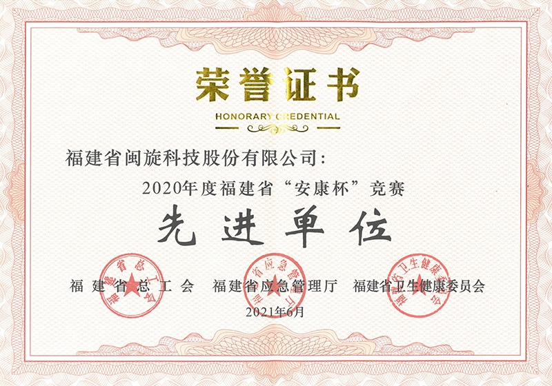 先进单位荣誉证书