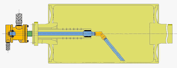 2.如果设备的结构决定了输入介质与输出介质在设备的同一侧实现,那么则选择双通路型旋转接头。 注:双通路型旋转接头还需确认内管形式,即固定式亦或旋转式,根据不同工况条件,进行针对性配型。 ①双通路内管固定式 用于向旋转辊、气缸或者滚筒之中供给蒸汽或者水、油,从同一端排出。
