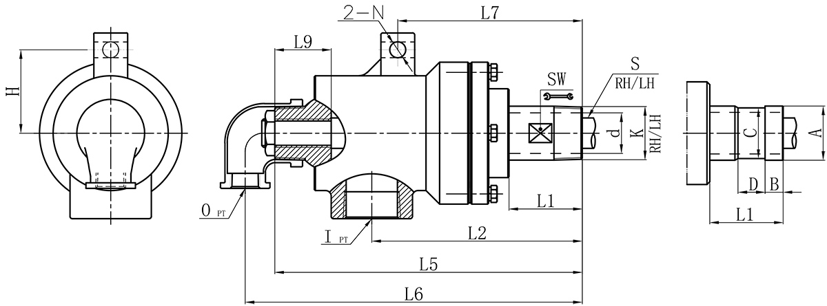 | Model | K | I | O | S | d | L1 | L2 | L5 | L6 | L7 | L9 | N | H | SW | 法兰式外管尺寸对照表 | |||