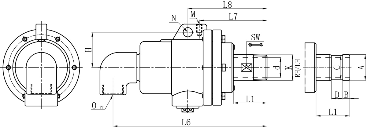 Model K O d L1 L6 L7 L8 M N H SW 法兰式外管尺寸对照表