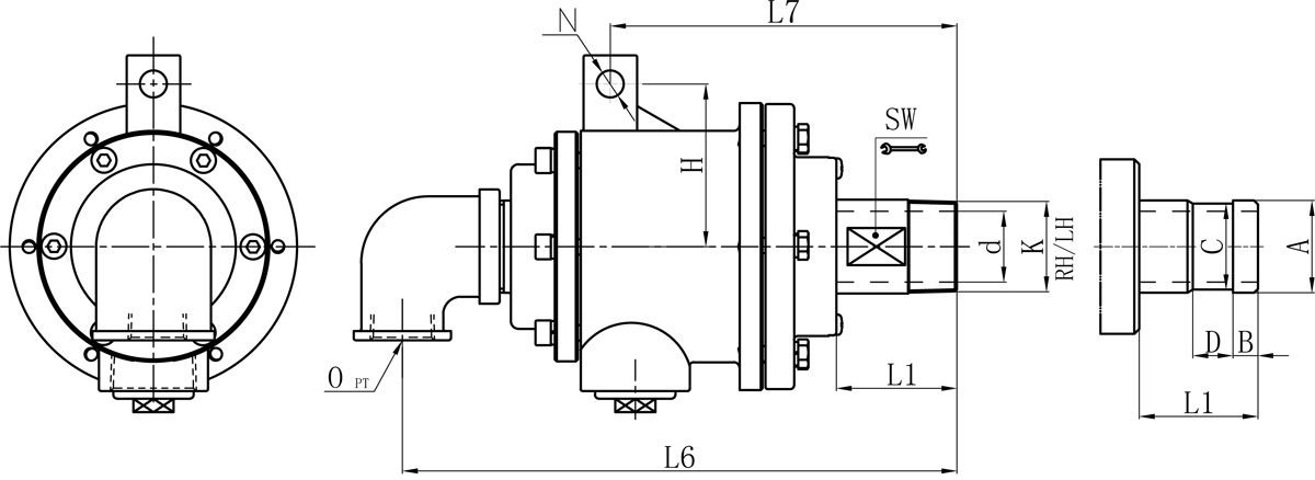 | Model | K | O | d | L1 | L6 | L7 | N | H | SW | 法兰式外管尺寸对照表 | |||