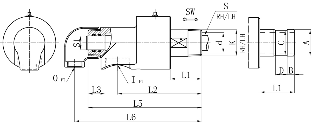 | Model | K | I | O | S1 | d | L1 | L2 | L3 | L5 | L6 | SW | 法兰式外管尺寸对照表 | |||