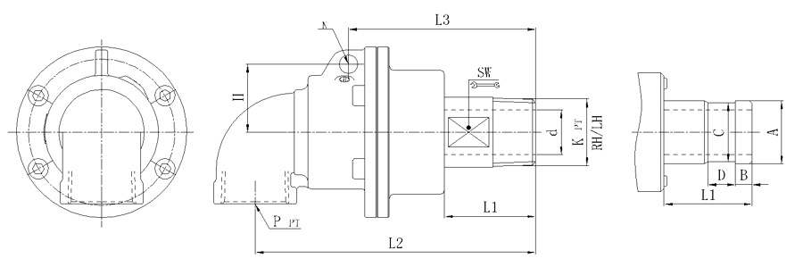 | Model | K | P | d | L1 | L2 | L3 | N | SW | H | 法兰式外管尺寸对照表 | ||||